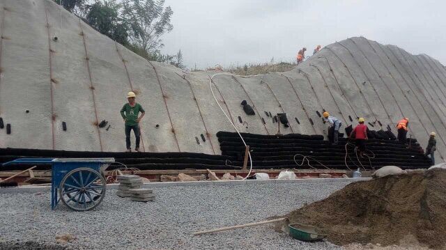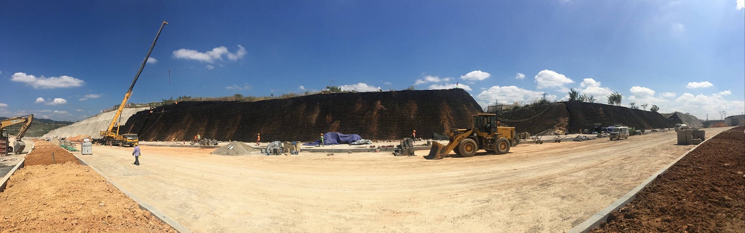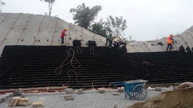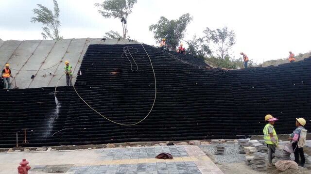 龍水路二期生態袋邊坡施工進度展示